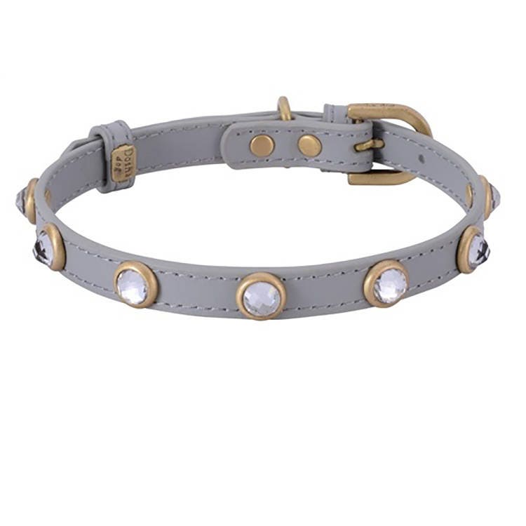 Petit collier de chien en cuir gris, collier de chien de cré...
