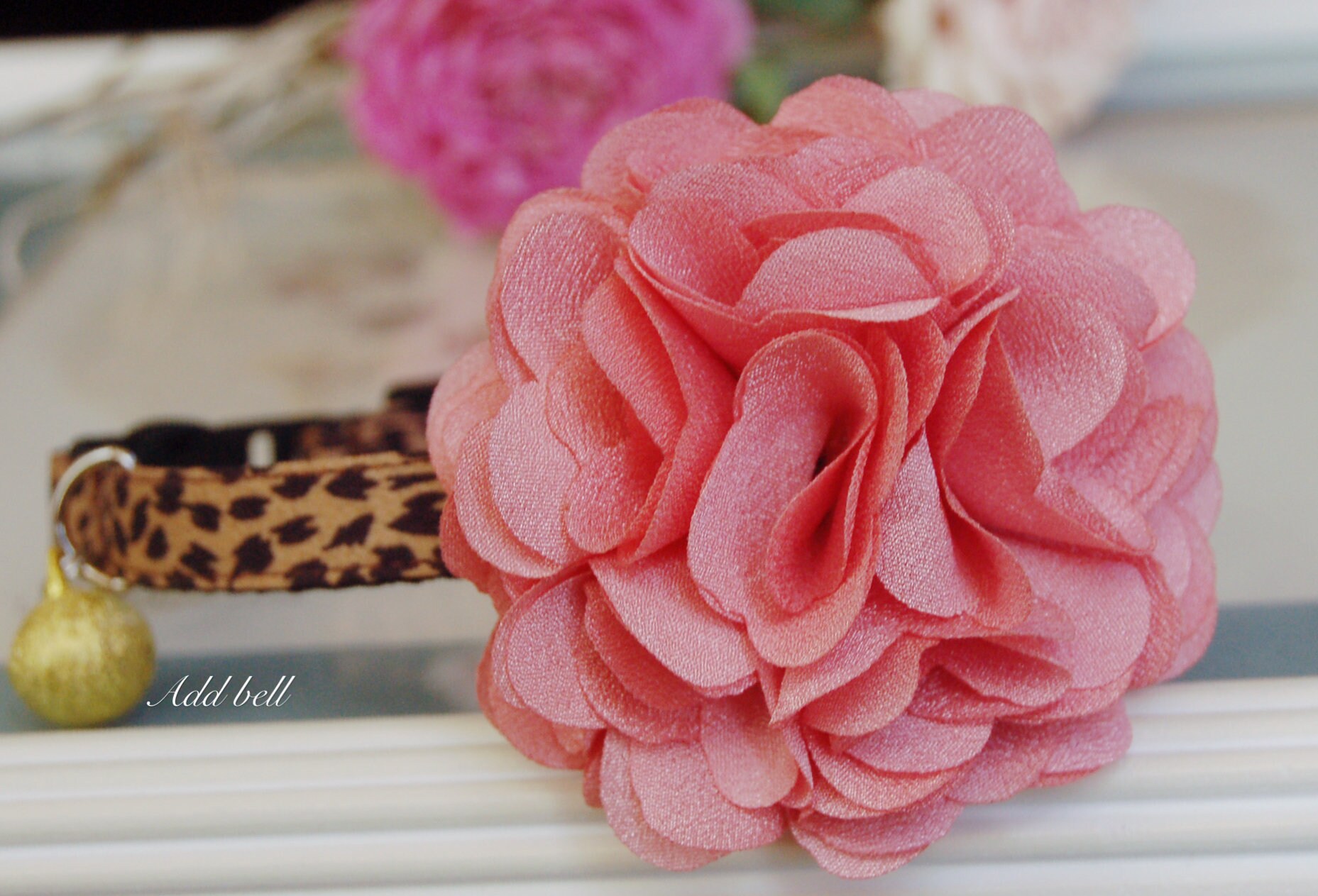 Collier pour chat avec fleurs rose foncé. Petit collier pour...