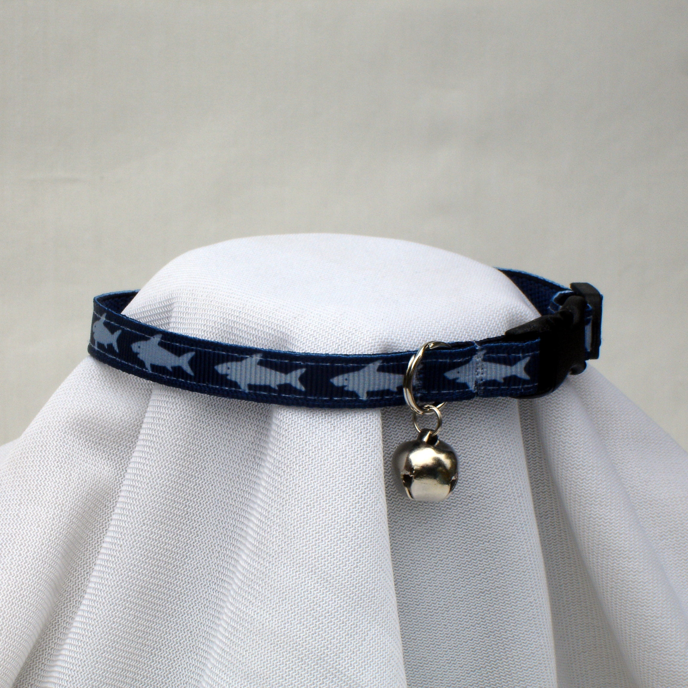 Collier requin pour chat Ruban requin bleu marine Collier pour chat ou chaton, choisissez la taille ...