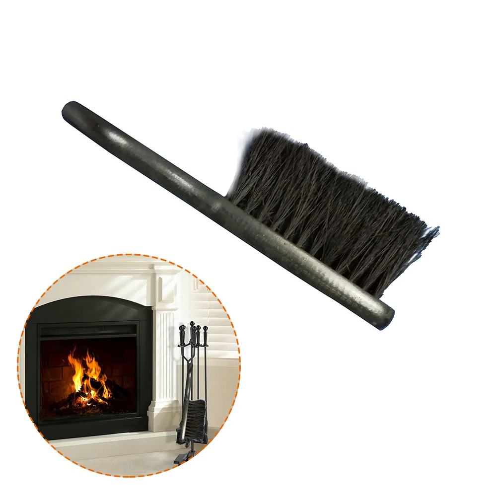 Brosse de cheminée manche en bois, brosse de cheminée, poils de palmier en noix de coc...