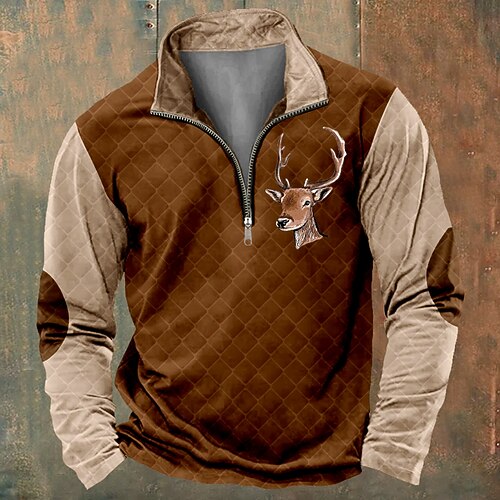 • Homme Patchwork Cerf Sweat-shirts Sweat-shirt Sweat-shirt zipp&eacu...