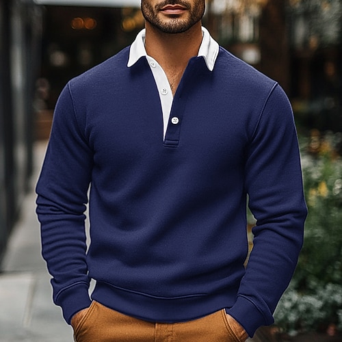 Homme Sweat shirt Sweat-shirt polo Noir bleu marine Bleu Marron Kak...