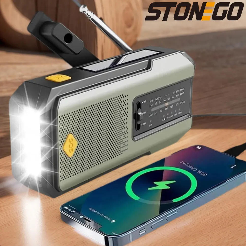 Radio solaire d'urgence Portable 4000mAh, charge à manivelle, Radio météo AM/FM...