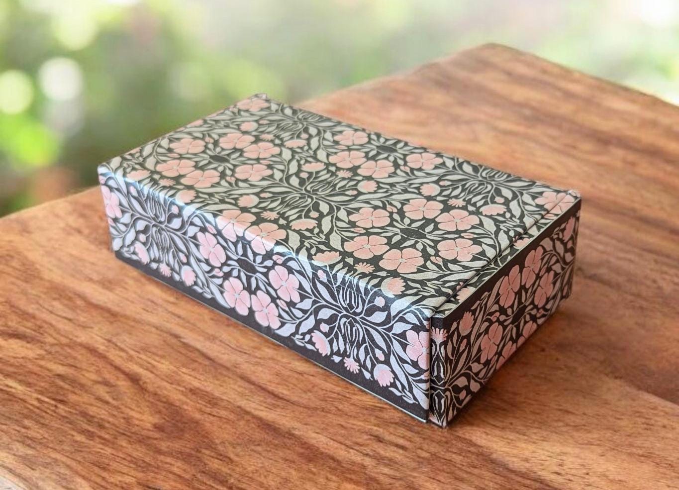 Ces 4 boîtes sont recyclées et recouvertes à la main de motifs Art nouveau sur l...