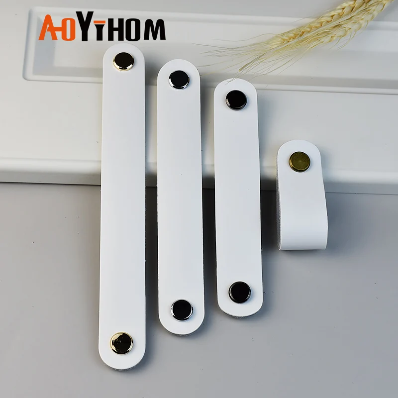AOYIHOM moderne minimaliste armoires de cuisine rangement en refente de cuir tire blanc nordique pea...