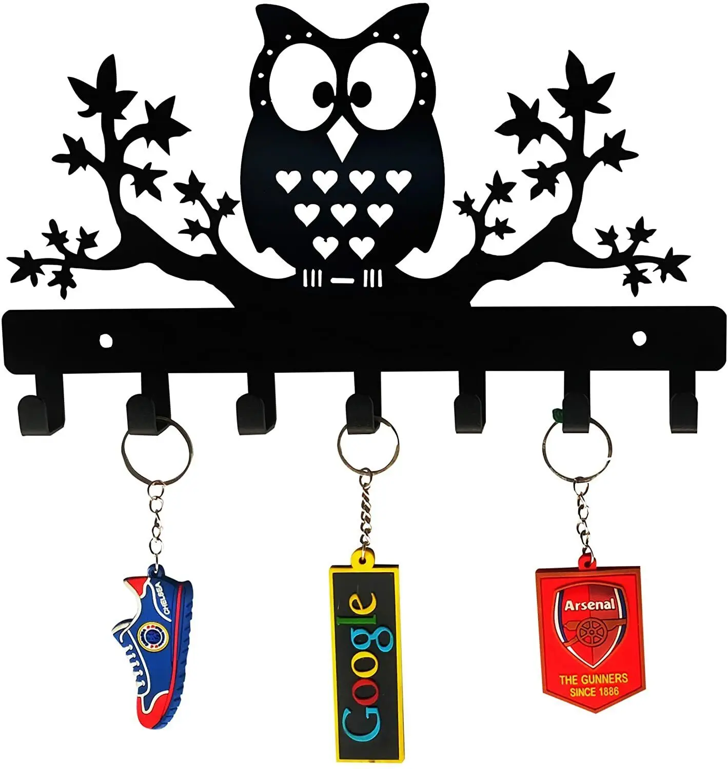 Porte-clés en acier hibou sur arbres d'érable, porte-...