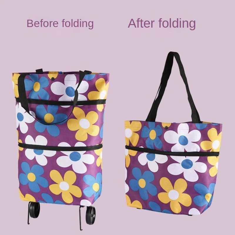 Chariot de courses pliable 2 en 1, chariot et roues pour sac de courses, sac à main roulant p...