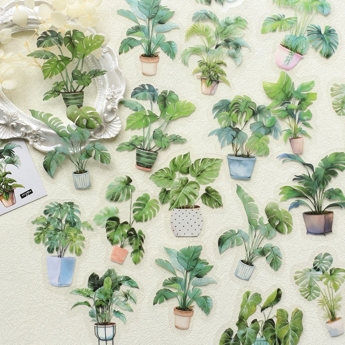Autocollants plantes tropicales en pot, 30 pièces/paquet, d&...