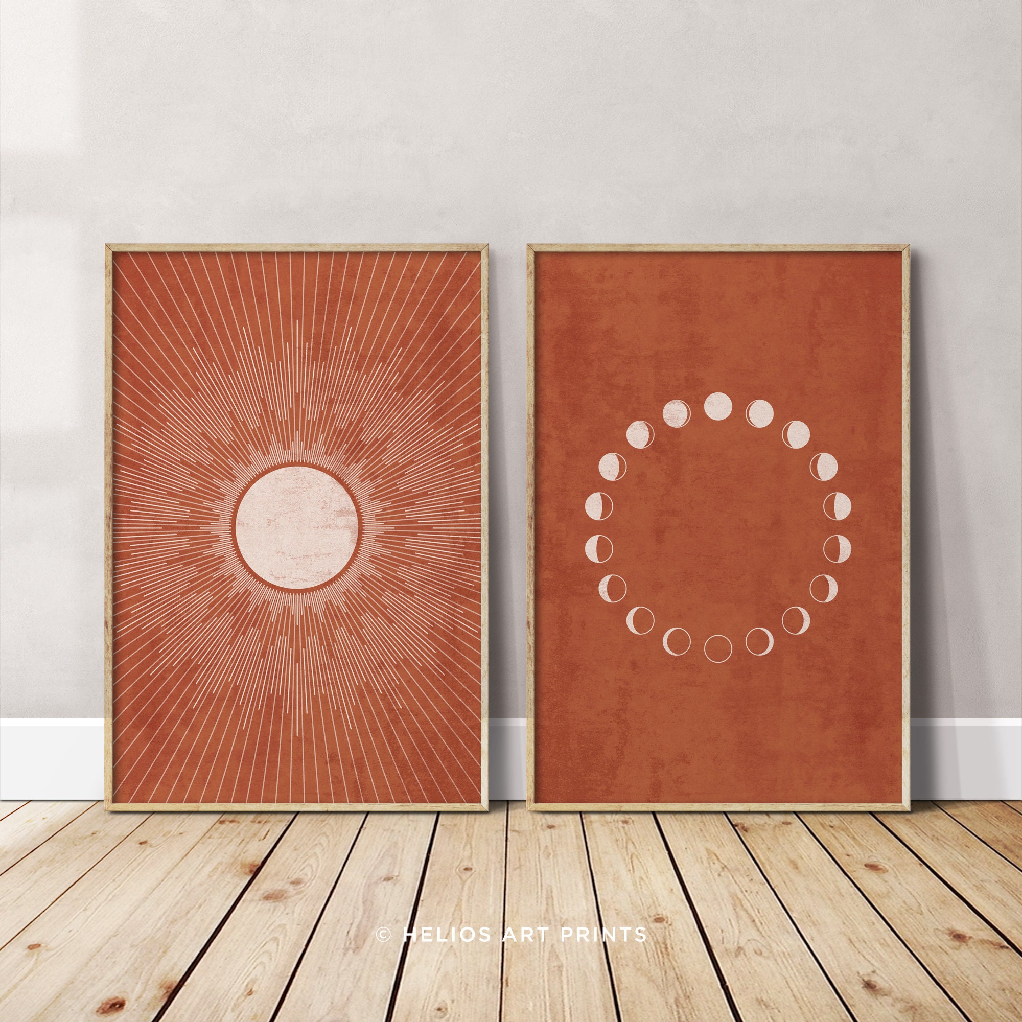 Sun and Moon Phase Mid Century Prints, Set Of 2 Terracotta Beige Ce...