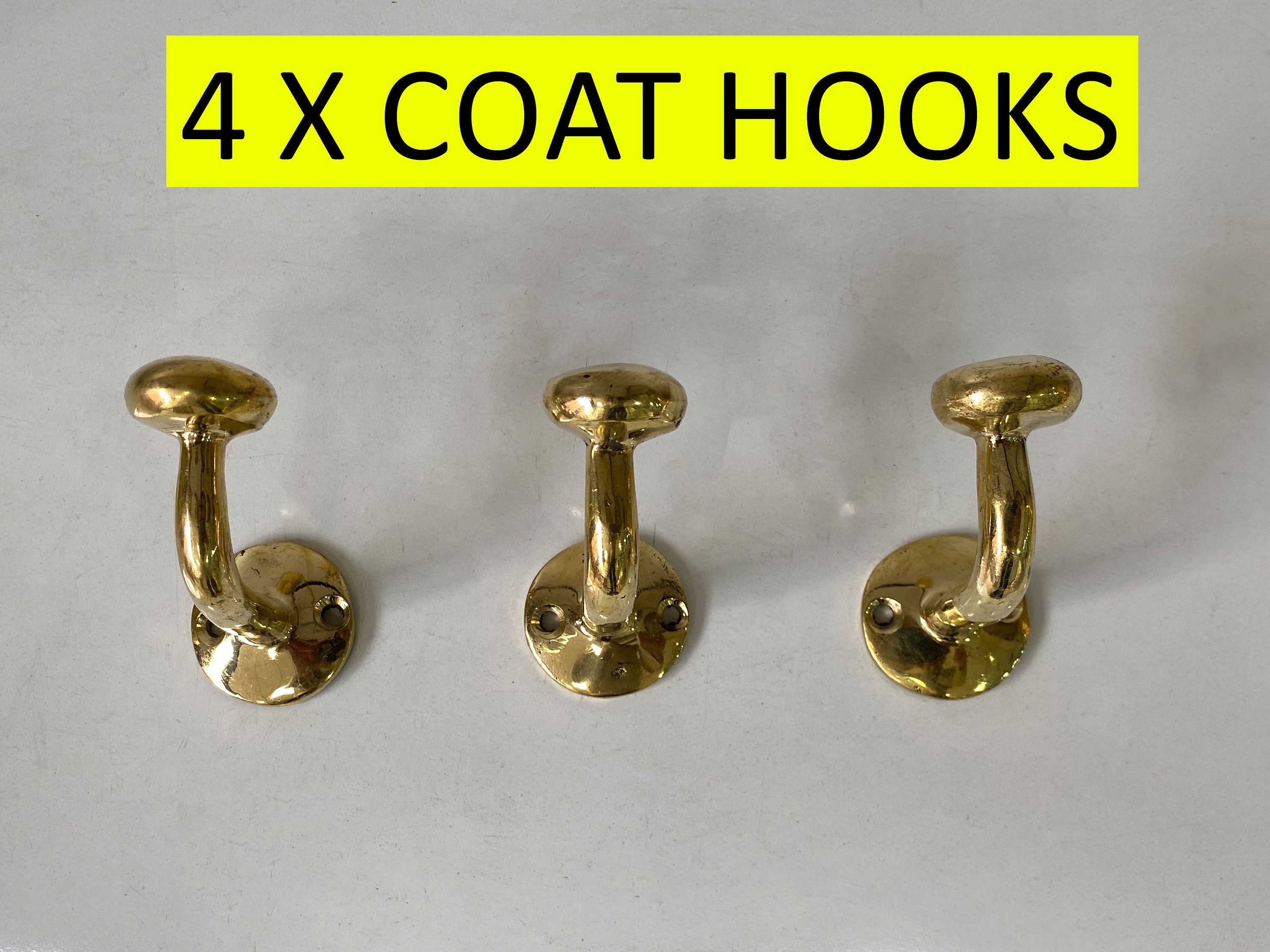 4 Pieces of Brass Wall Coat Hooks, Minimalist Brass Wall Storage, C...