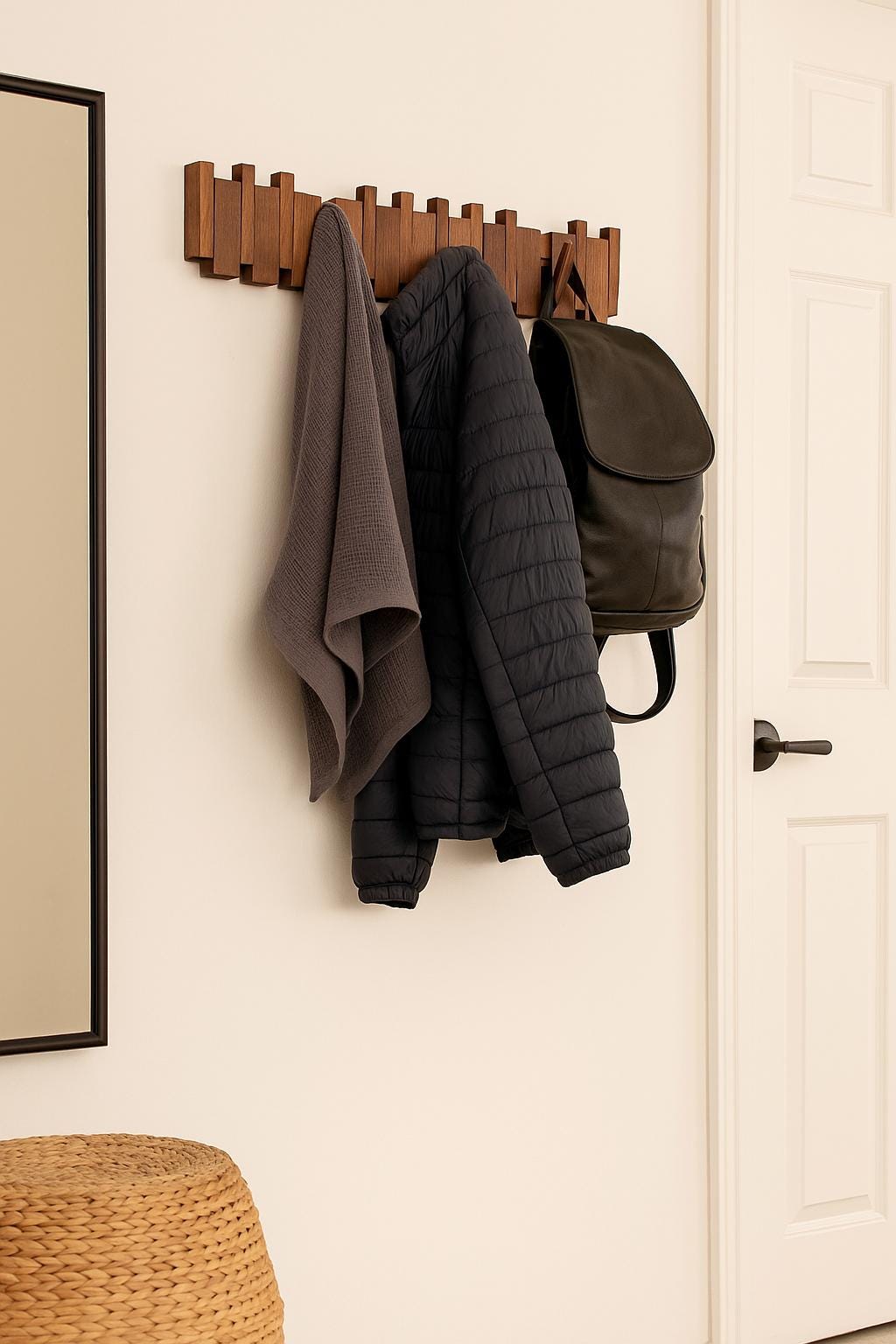Modern Wooden Wall Coat Rack - Foldable Hook Hanger for Entryway, C...