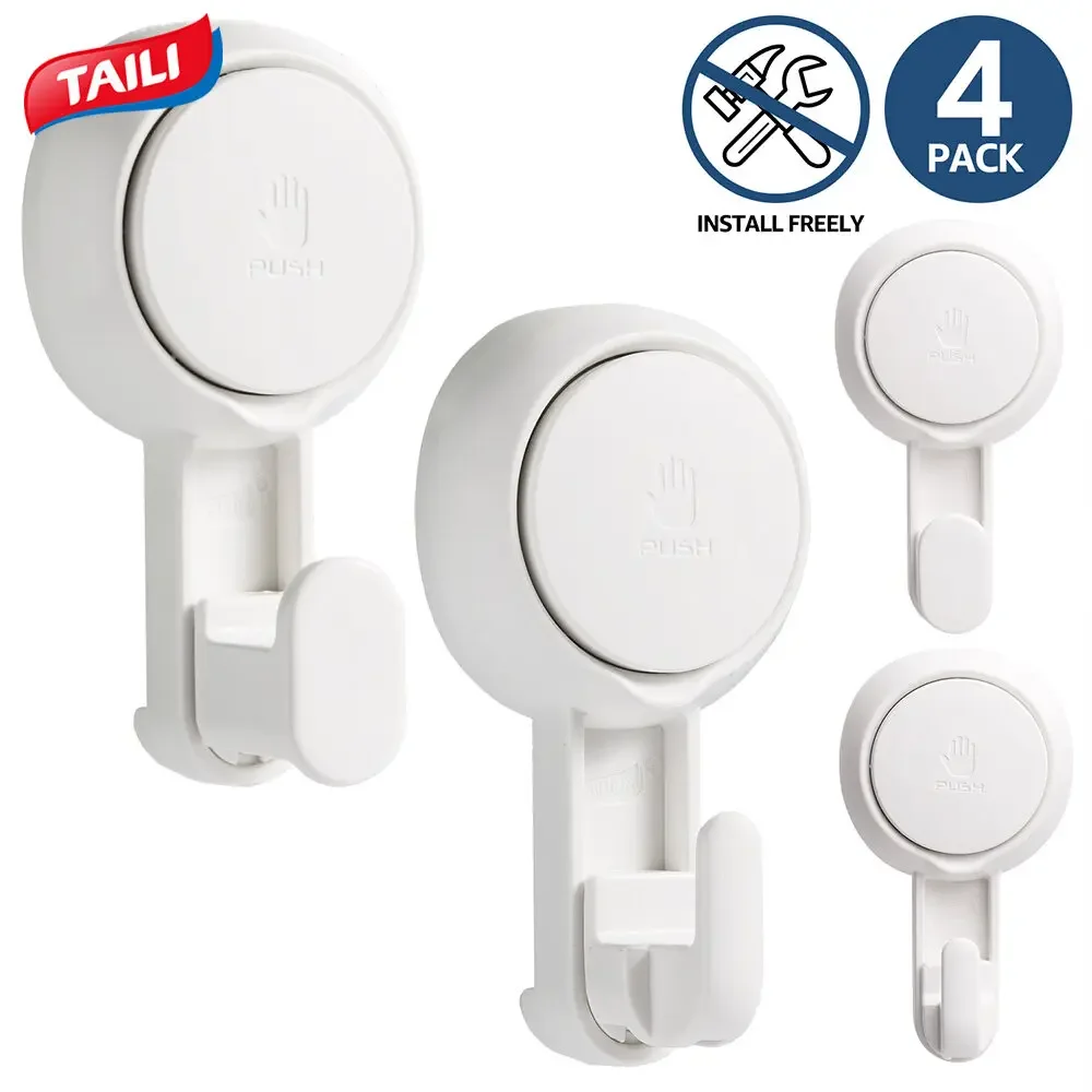 TAILI Crochet Ventouse Lot de 4 Crochet Mural en Plastique Charge de 5KG Ventouse Salle de Bain en F...
