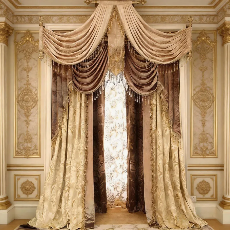 Rideaux de salon de luxe, rideaux européens en perles, rideaux occultants à perles pou...