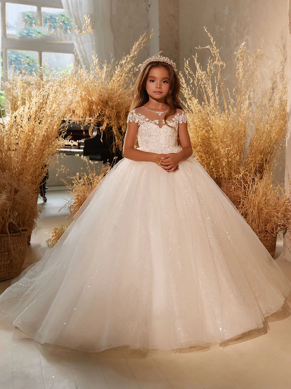Robe de demoiselle d'honneur personnalisée en ivoire pour mariage, tulle, paillettes, perles,...