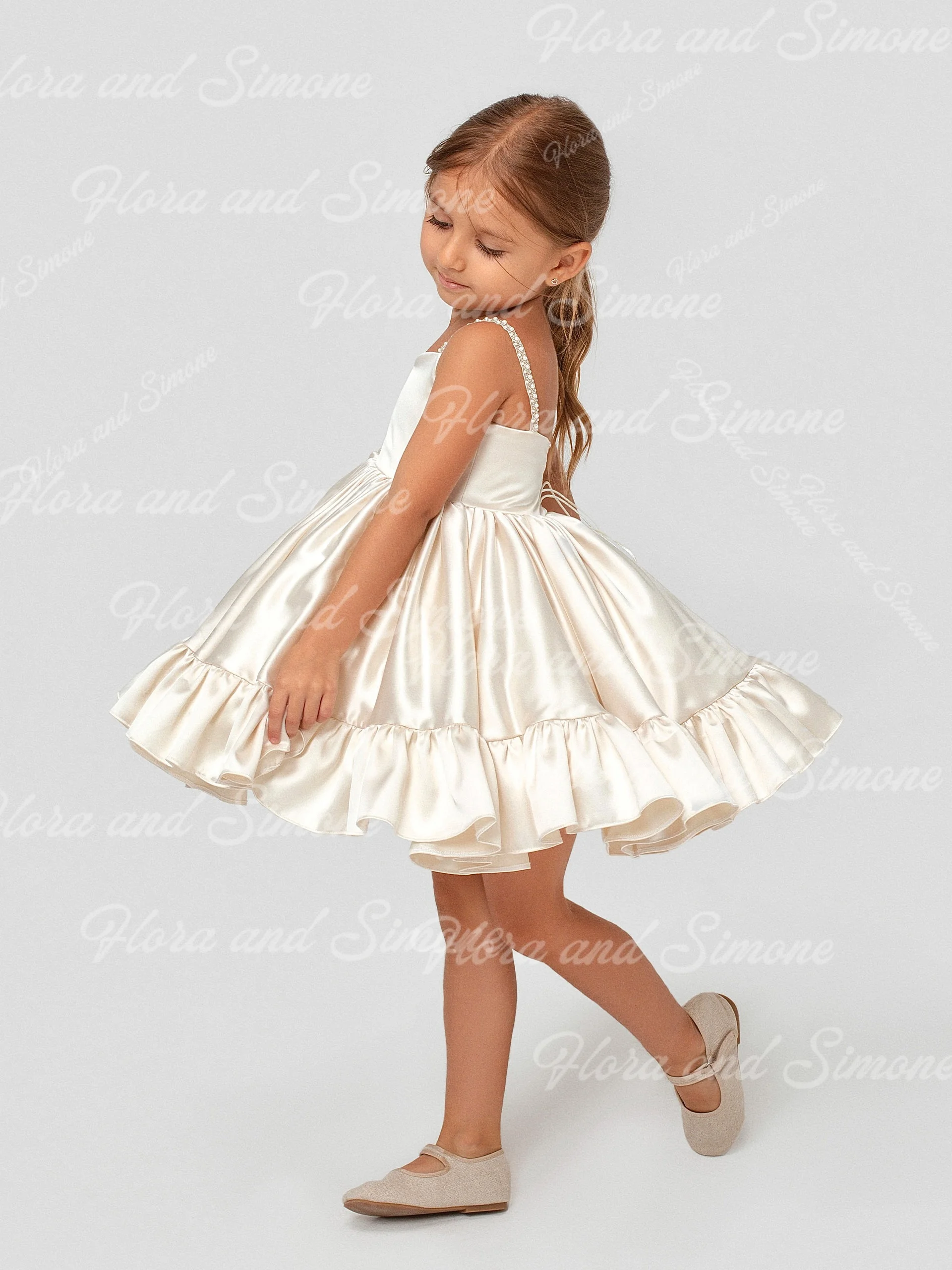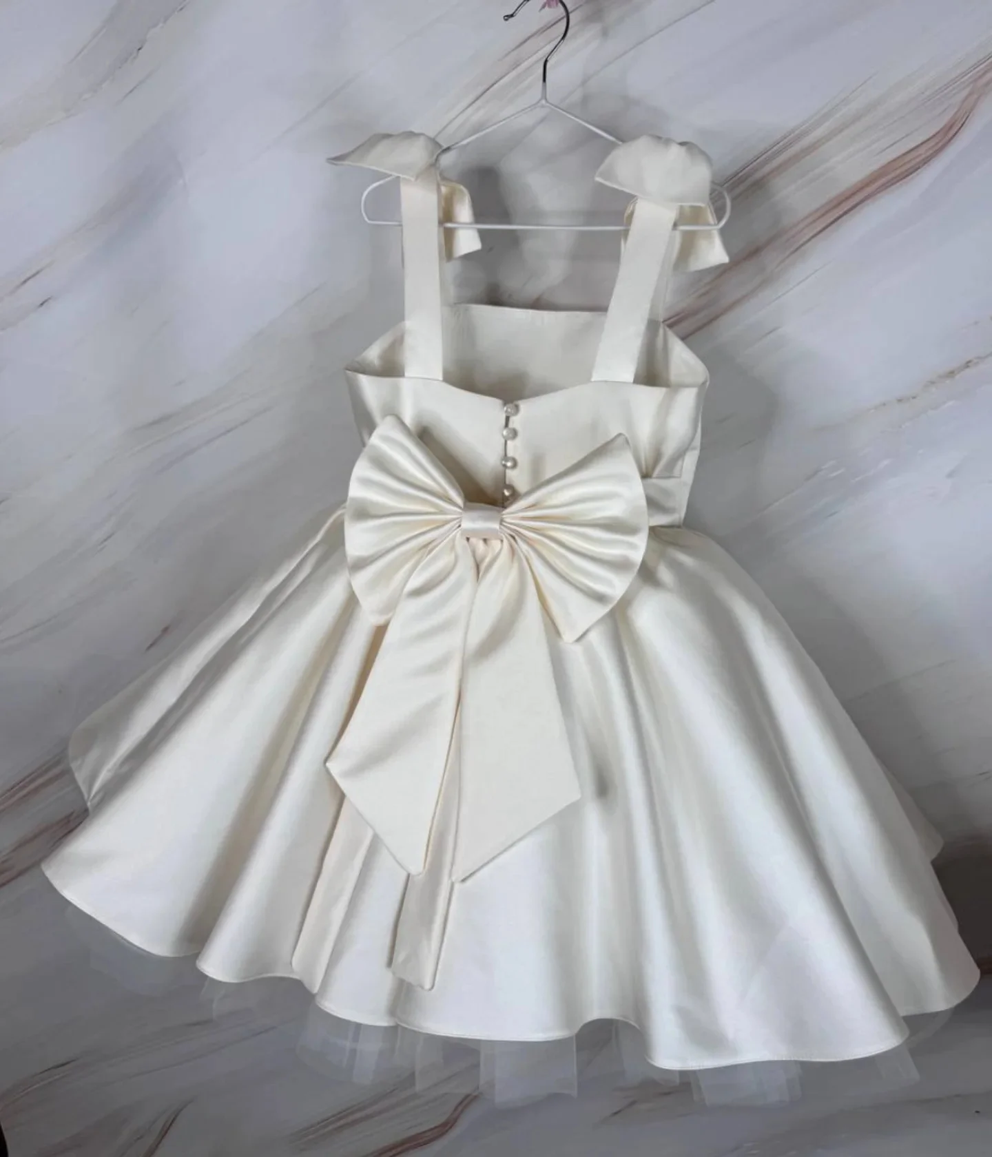 Robe de demoiselle d'honneur en satin ivoire, robe de fête de mariage pour petites filles, min...