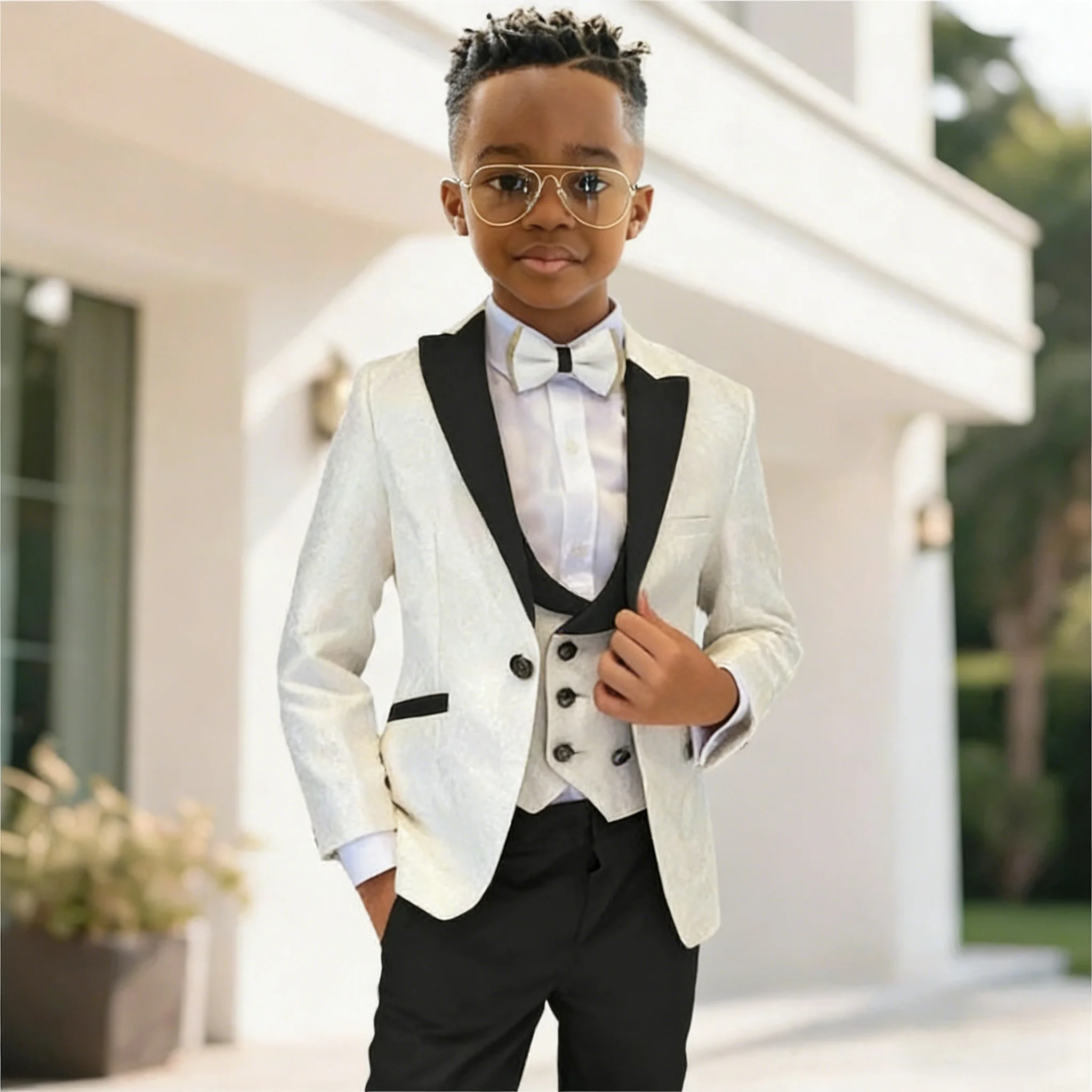 Costume Jacquard ivoire pour garçon, ensemble Blazer, gilet et pantalon, Tuxedos de mariage p...