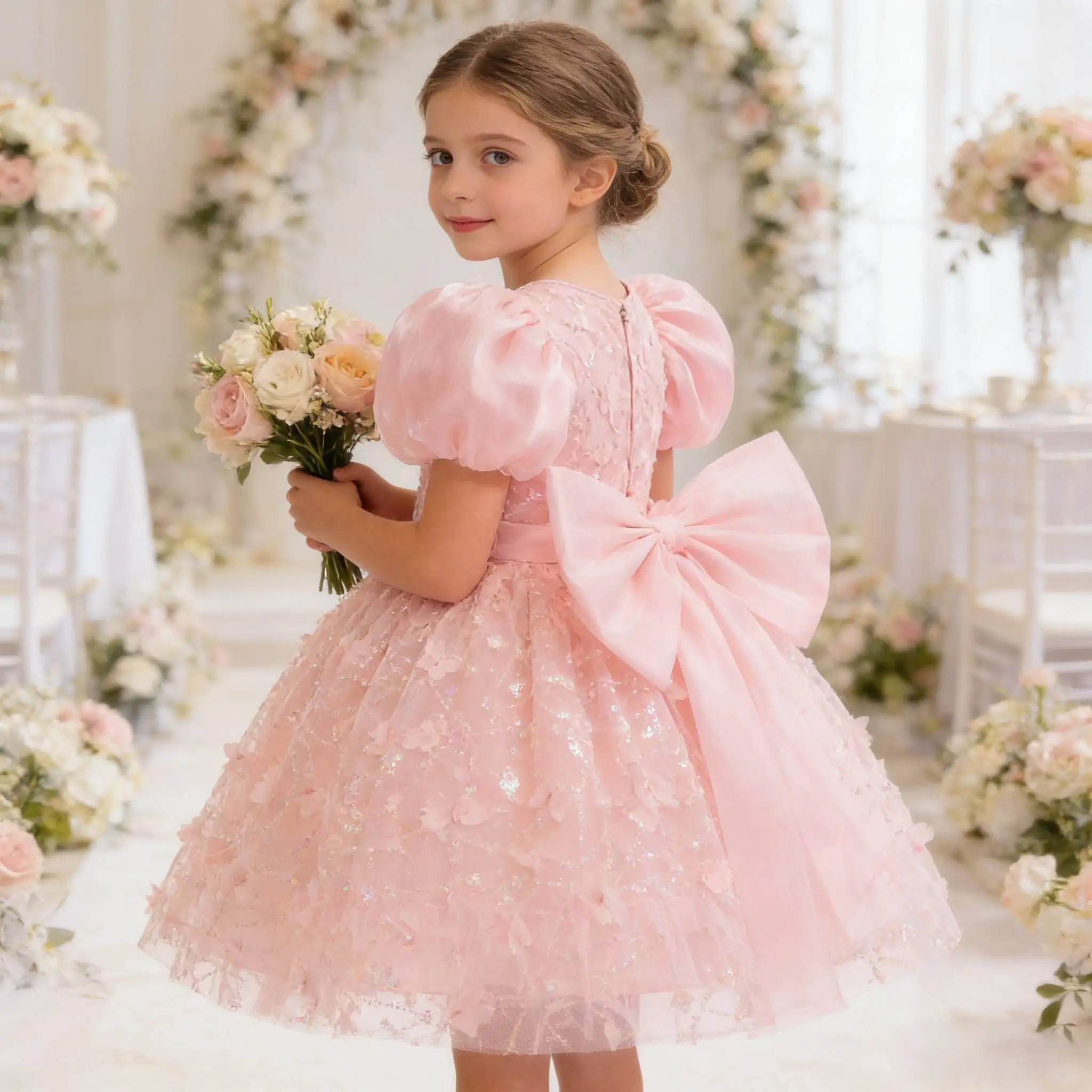 Robe de soirée de luxe pour filles 2026, à manches courtes, avec sequins et papillons ...
