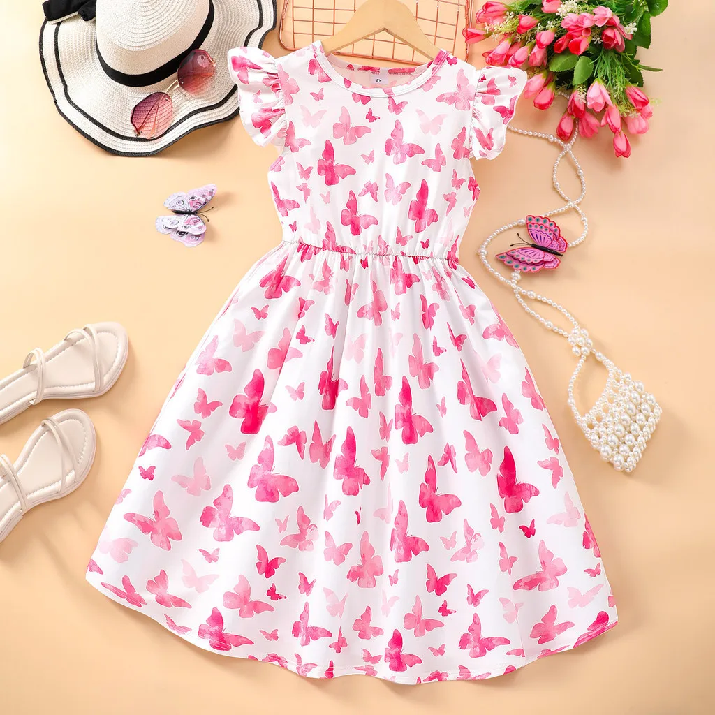 Robe papillon à manches courtes pour adolescentes, vêtements pour enfants, robes d&eacu...