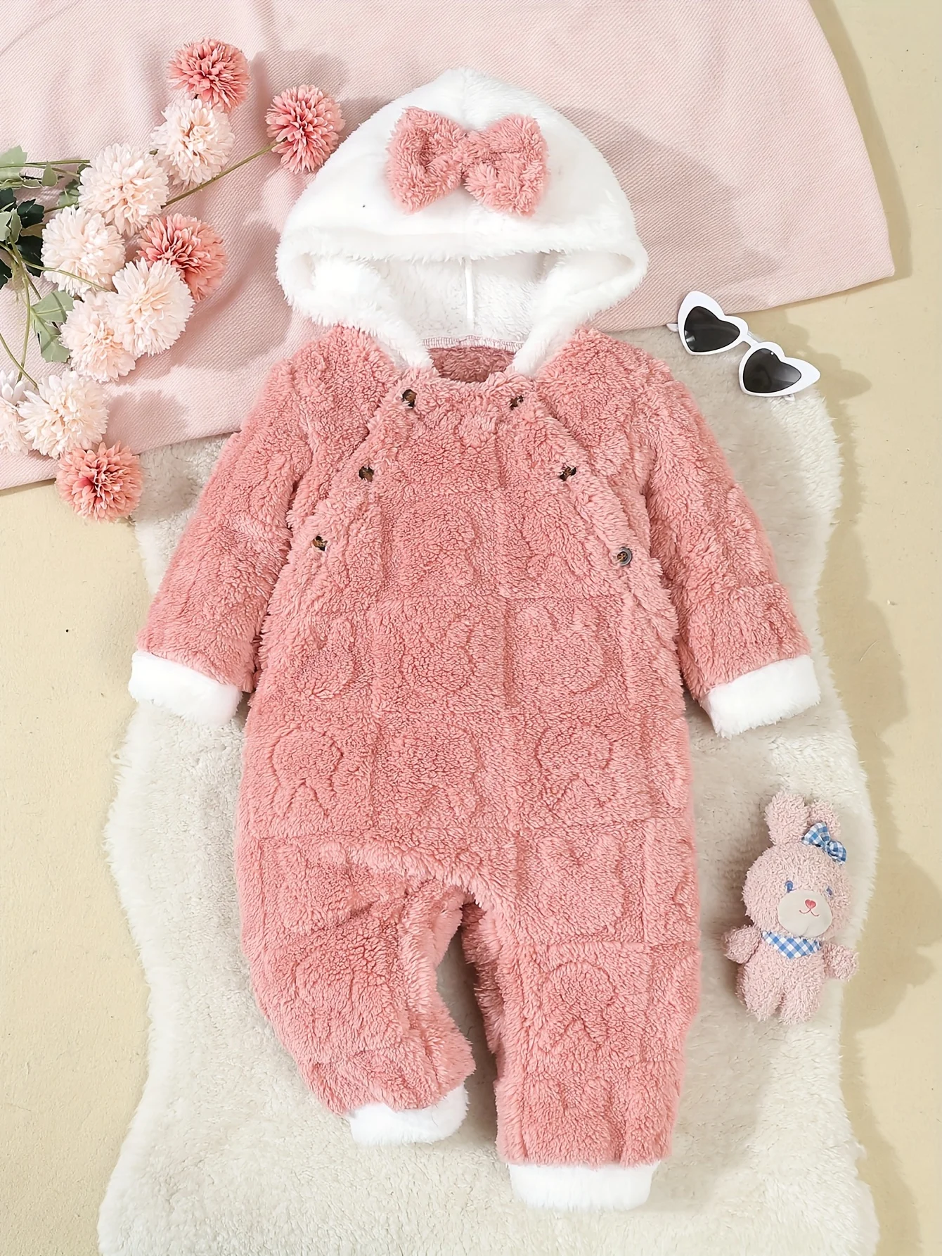 Robe à capuche en peluche de lapin Jacquard pour petites filles, robe une pièce chaude...