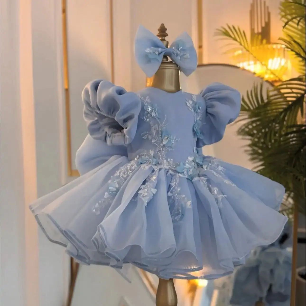 Robe à fleurs bleu clair pour filles, pour mariage, longueur...