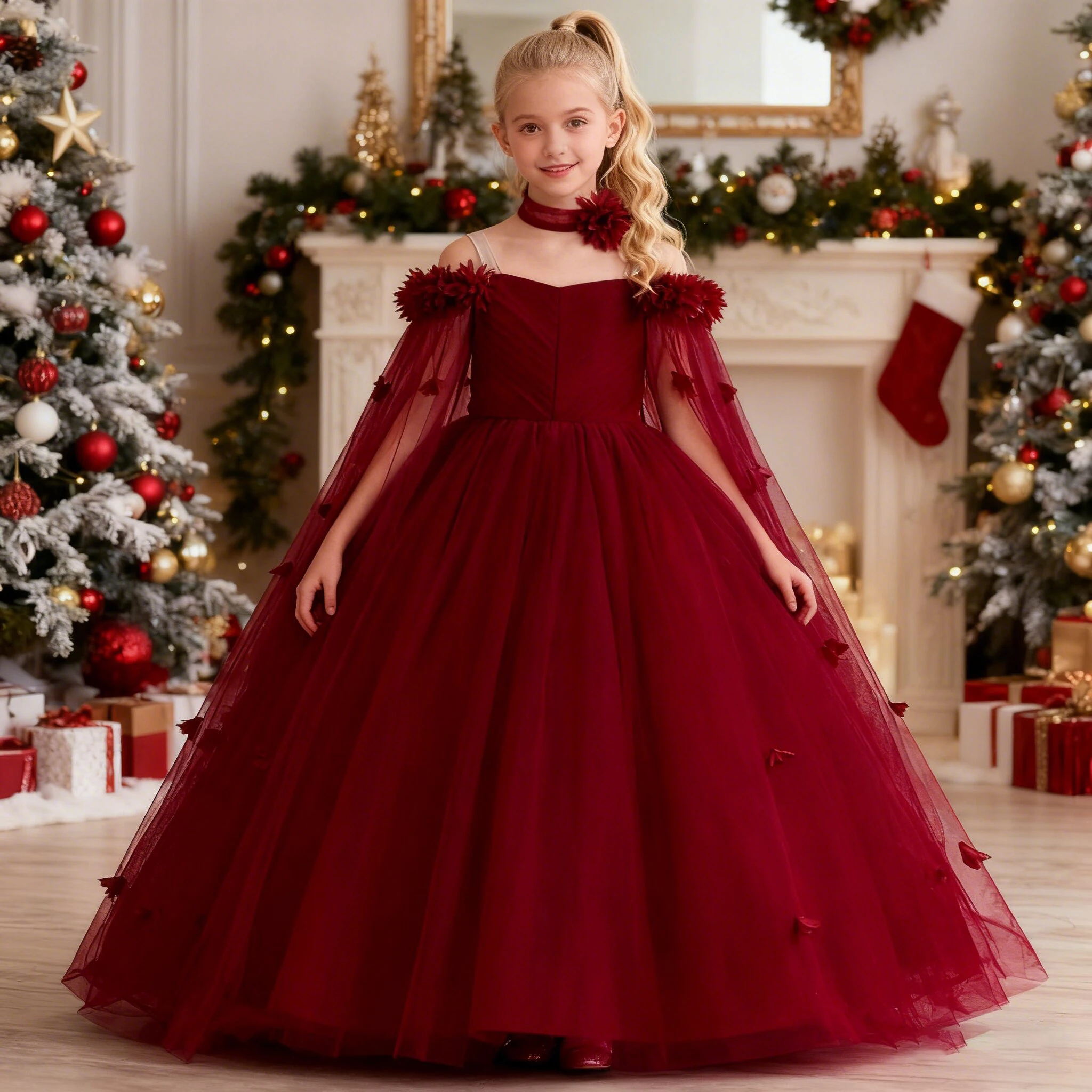Robe de soirée de demoiselle d'honneur pour filles, Costumes de noël, robe de princesse ...