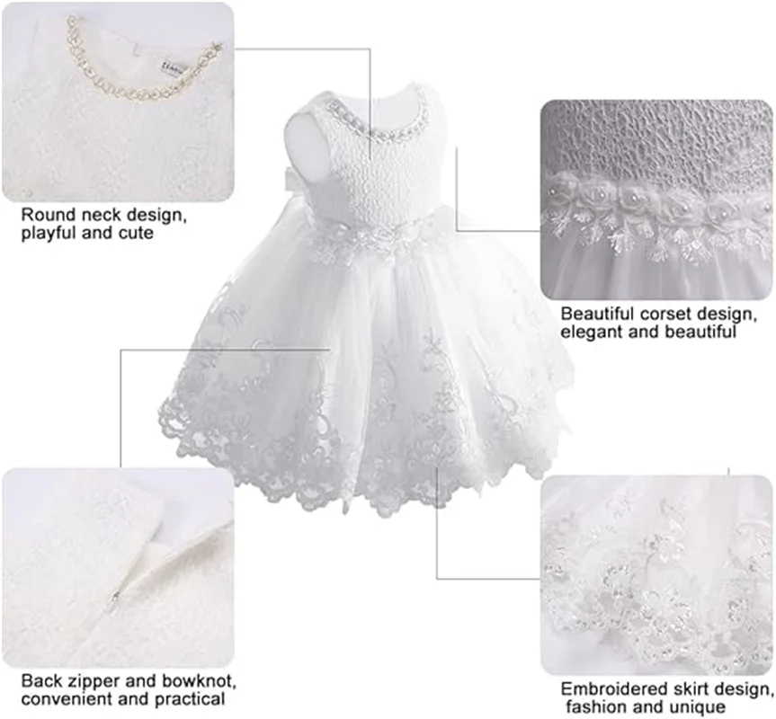 Robe de baptême pour enfants, robe de mariée pour filles, en dentelle blanche, robe de ...