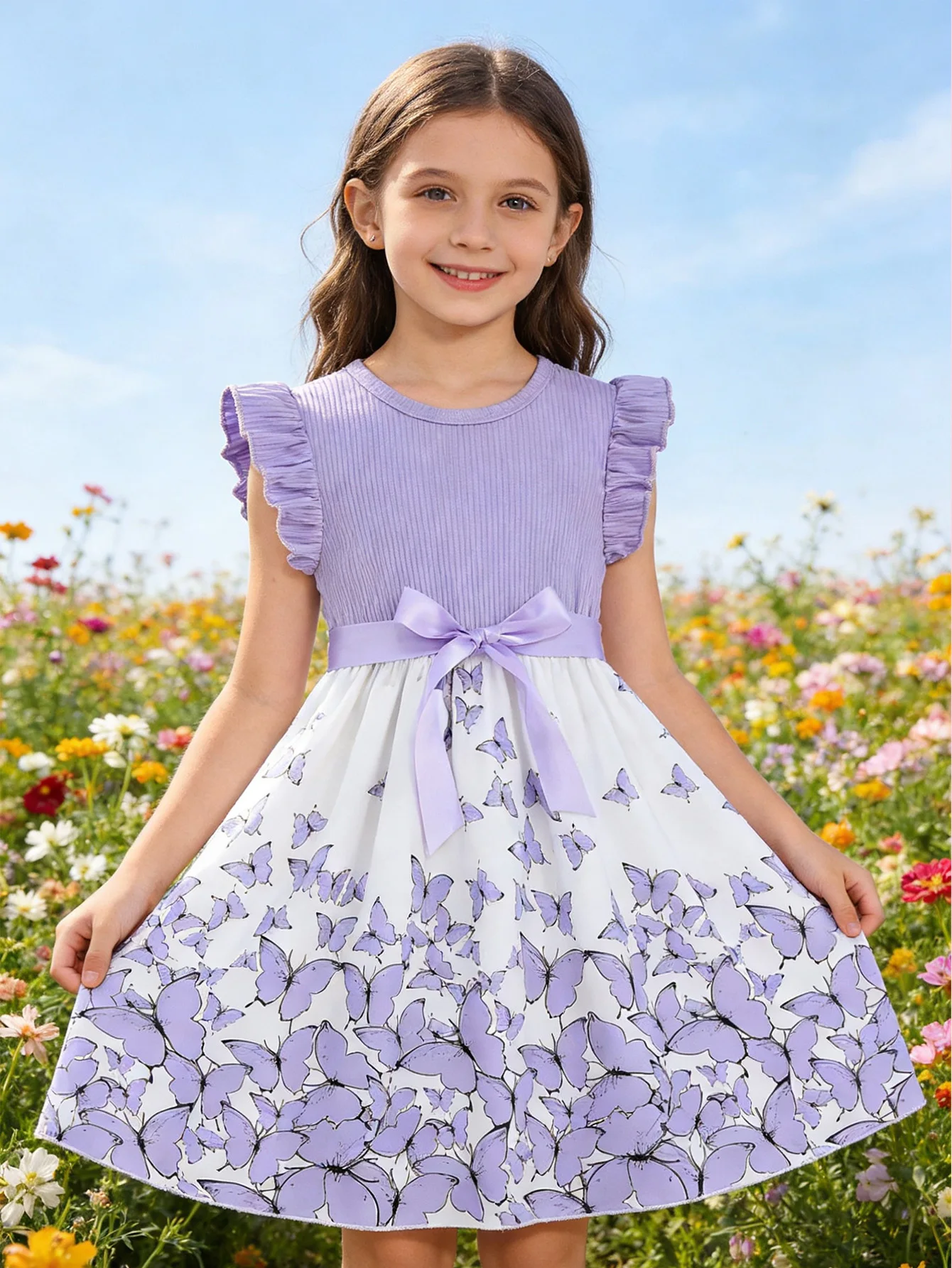 Robe à manches papillon pour filles, couleur violette. Nouvelle robe de princesse él&e...