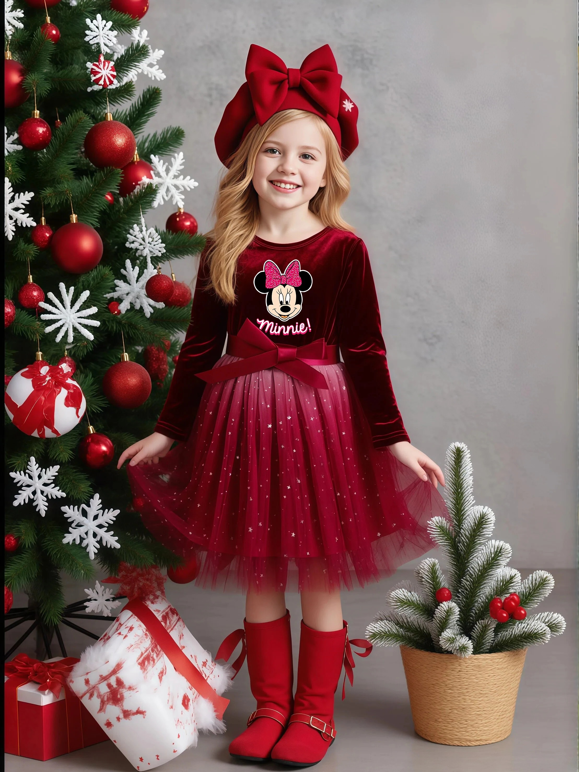 Mickey Minnie filles robe velours à manches longues étoile dégradé maill...