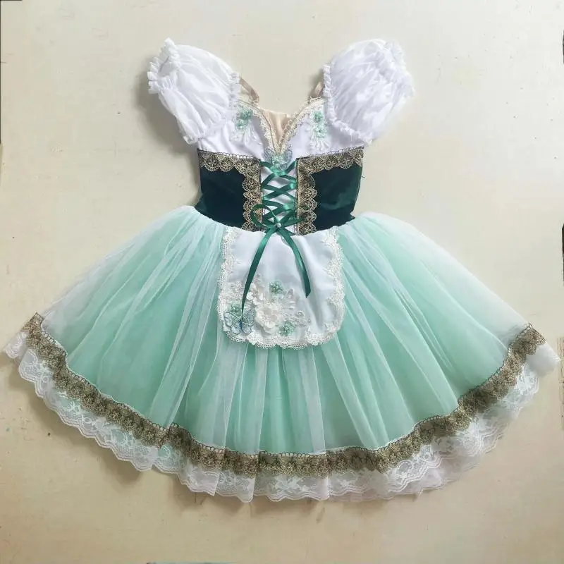 Robe de Ballet longue pour enfants femmes vert romantique Tutu Giselle Performance Costume danse Bal...