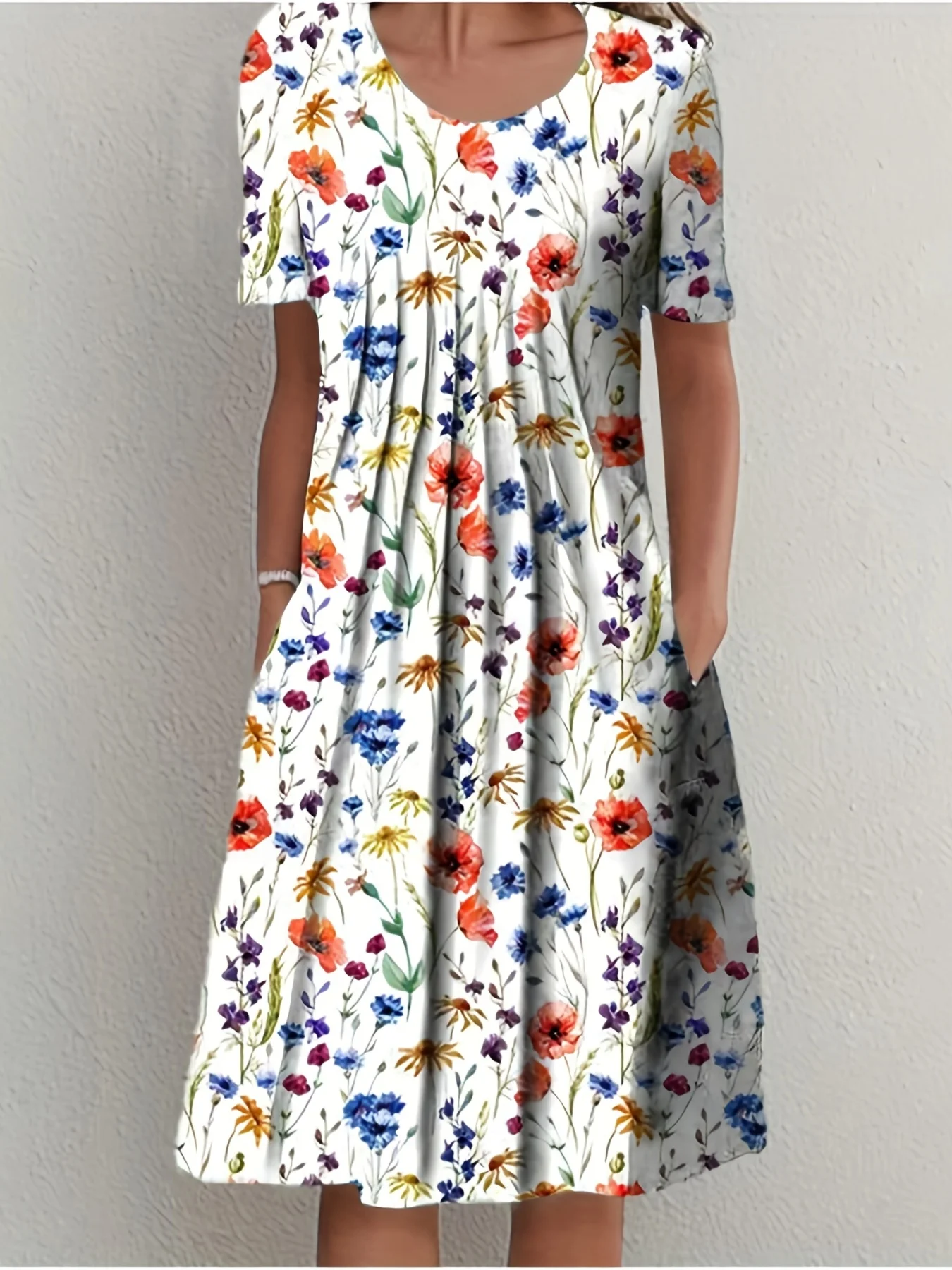Robe élégante à manches courtes et col rond pour femme, grande jupe imprim&eacu...