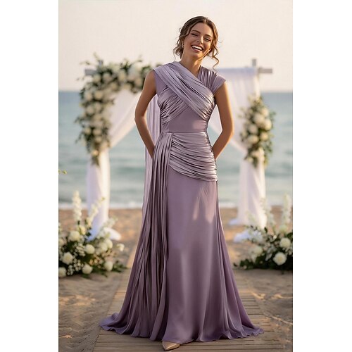 Fourreau Colonne Longueur au sol Robe d'invité de mariage Ro...