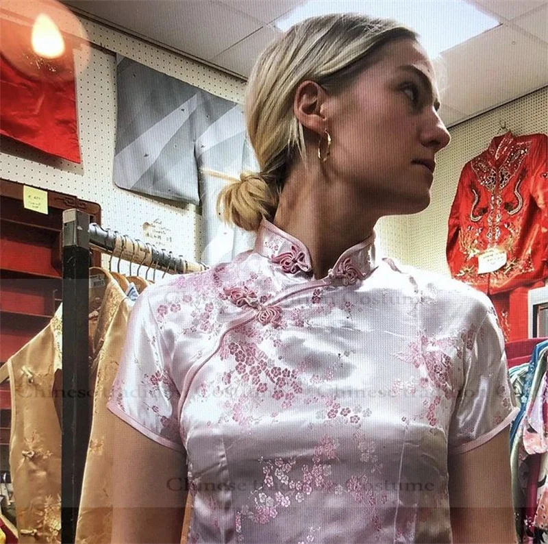 Haut Qipao imprimé fleur rose pour femmes, chemise de Style ...