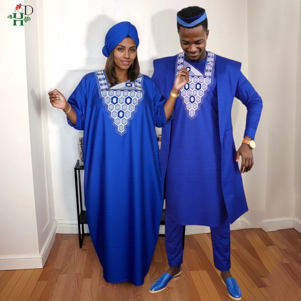 Grande taille pour femmes Dashiki robe africaine pour hommes caftan Boubou vêtements bleu f&ec...