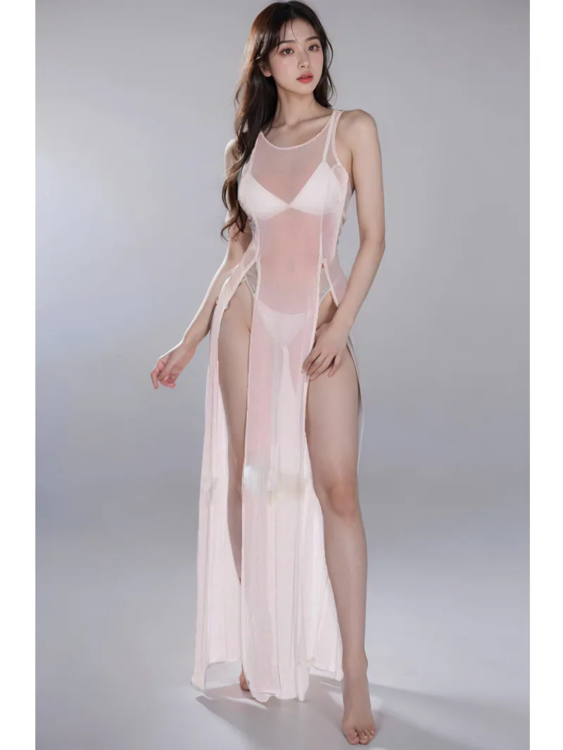Dentelle O maille cou Maxi robe maille dentelle mince Transparent S...
