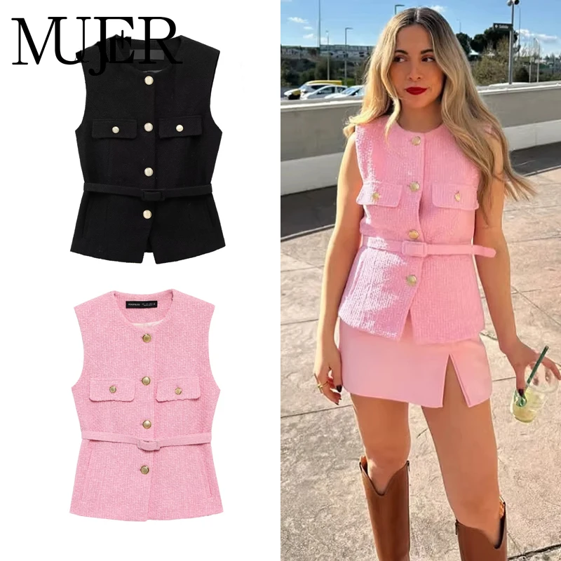 MUJER 2025 gilet texturé femmes ceinture gilets sans manches pour femmes été ve...