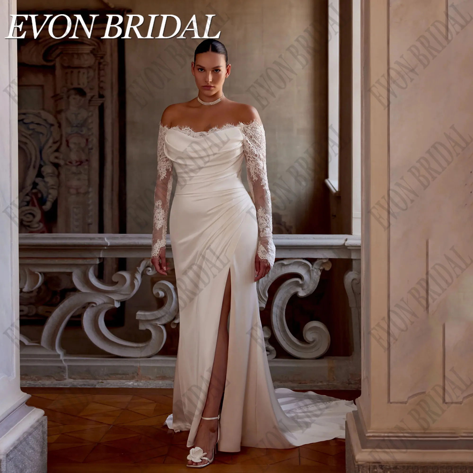 EVON BRIDAL-Robe de Mariée en Dentelle Personnalisée pour Femme, Manches sulf, Sans Br...