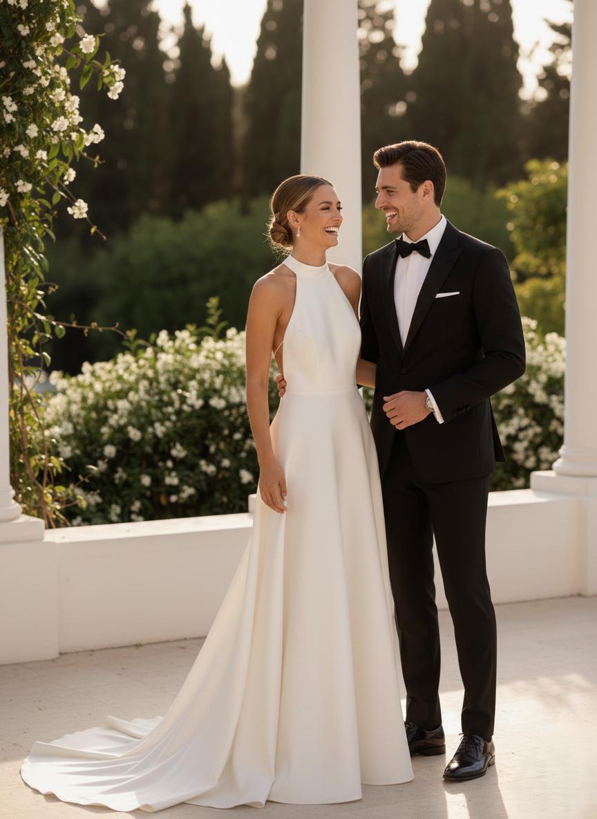 "Halter Neck Wedding Dress -- Minimalist Satin Gown with Stunning Backless Design Sophisticatio...