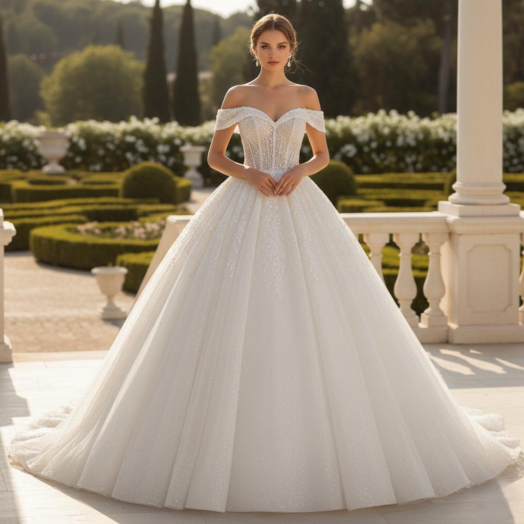 Off the Shoulder Ball Gown Wedding Dress - Glitter Tulle Princess B...