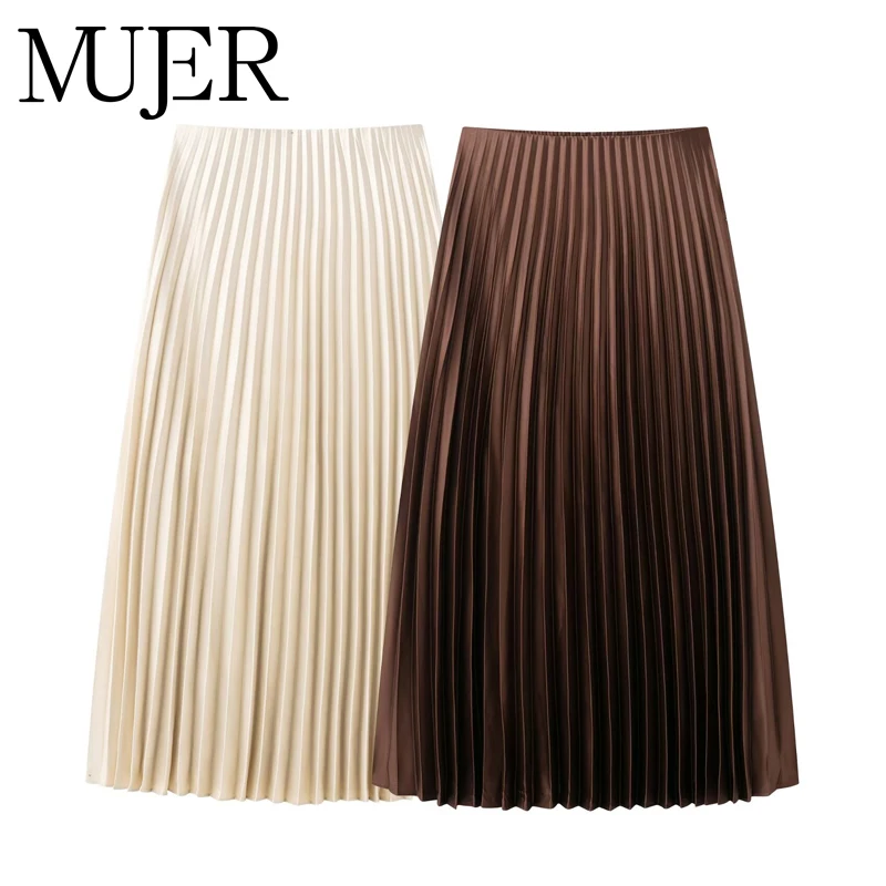 MUJER jupes longues plissées pour femme 2025 jupe Midi en Satin drapé femmes printemps...