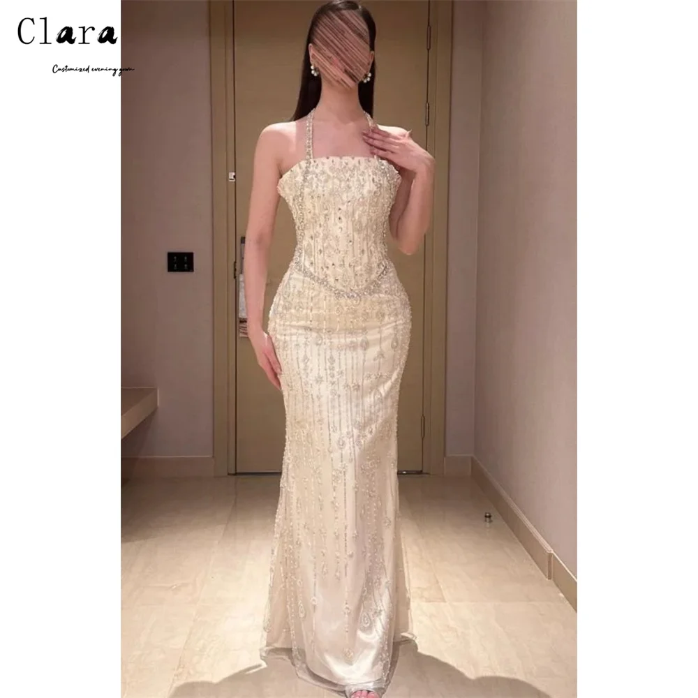 Clara personnalisé queue de poisson bretelles sans manches brillant robes de luxe pour robe d...