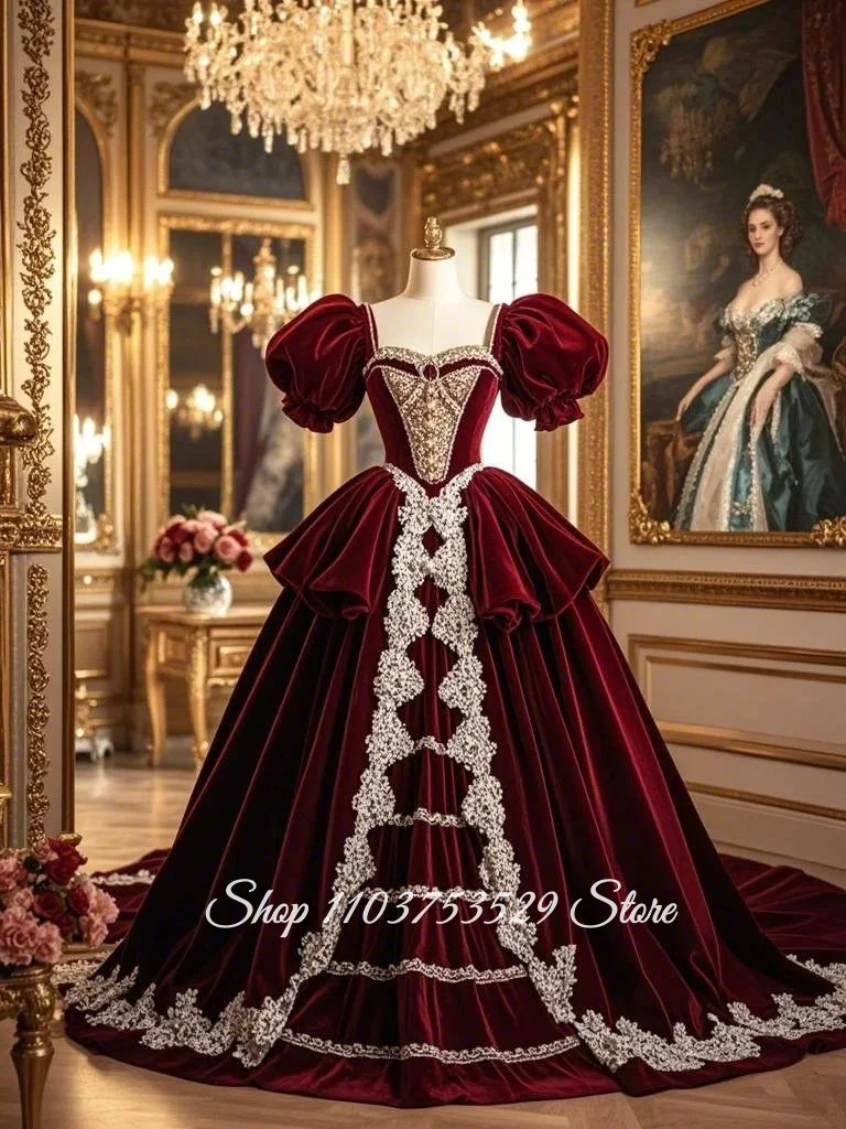 Robe de bal victorienne vintage bordeaux, robe de soirée pour occasions spéciales, rob...