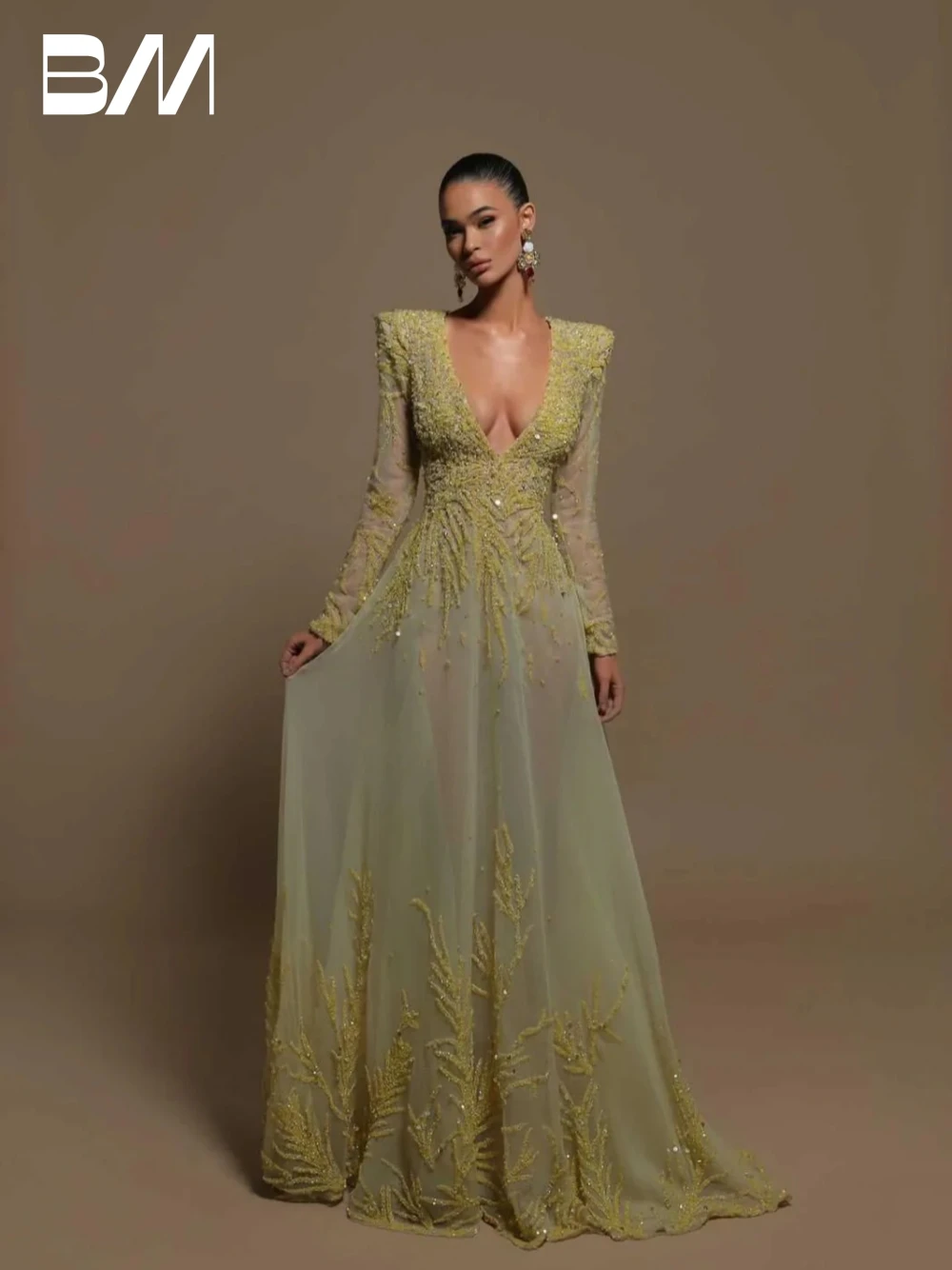 Robe de Rhchic à col en V avec perles, robes de soiré...