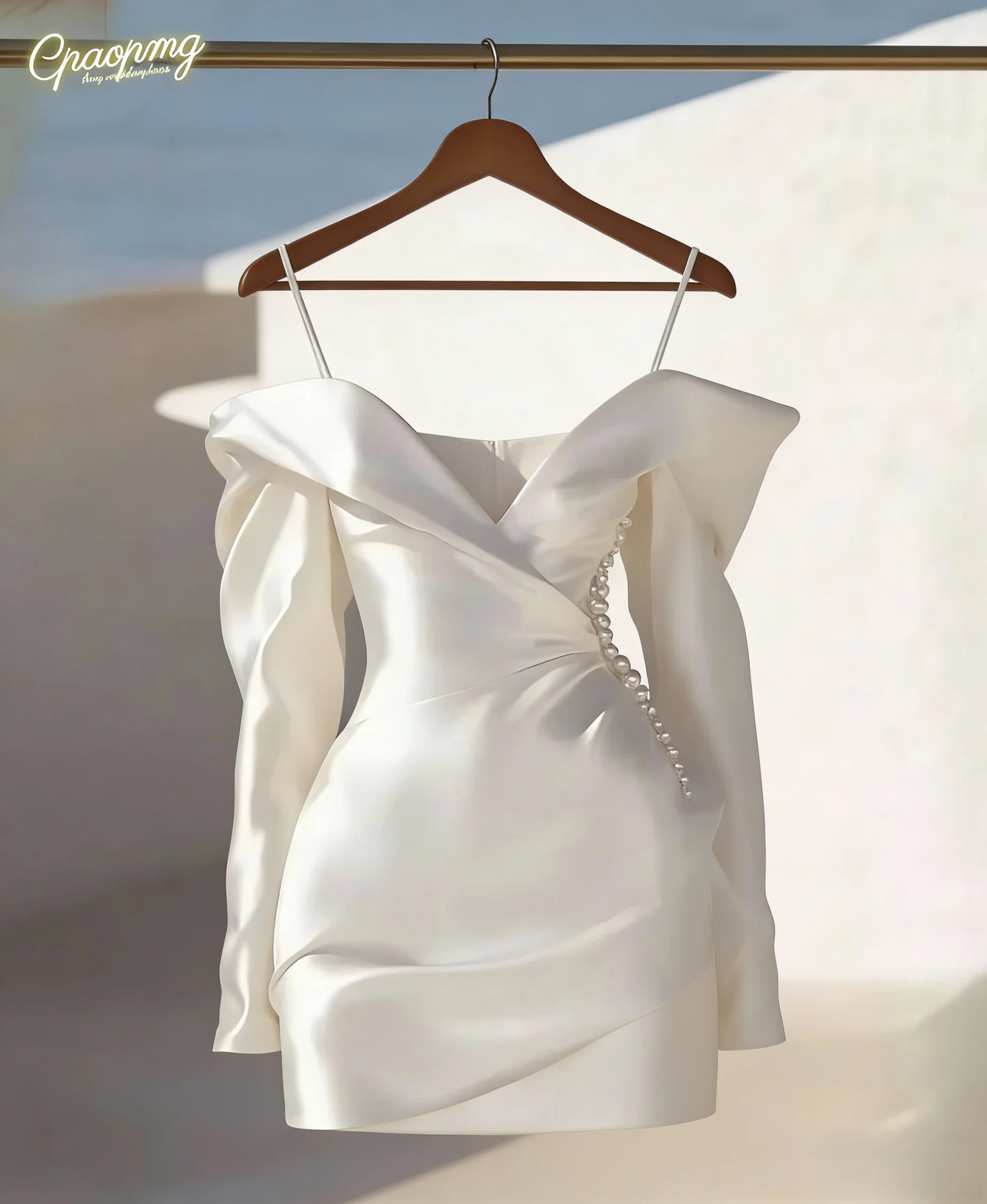 Robe de soirée courte à manches longues et col en V sexy personnalisée, robe de...