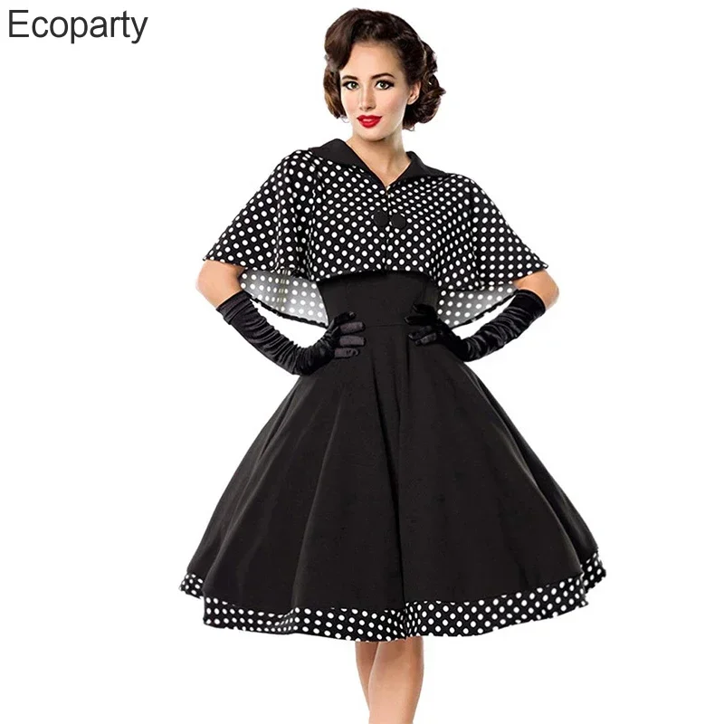 Robe rockabilly rétro à pois pour femmes, grande balançoire, robe de cocktail, ...