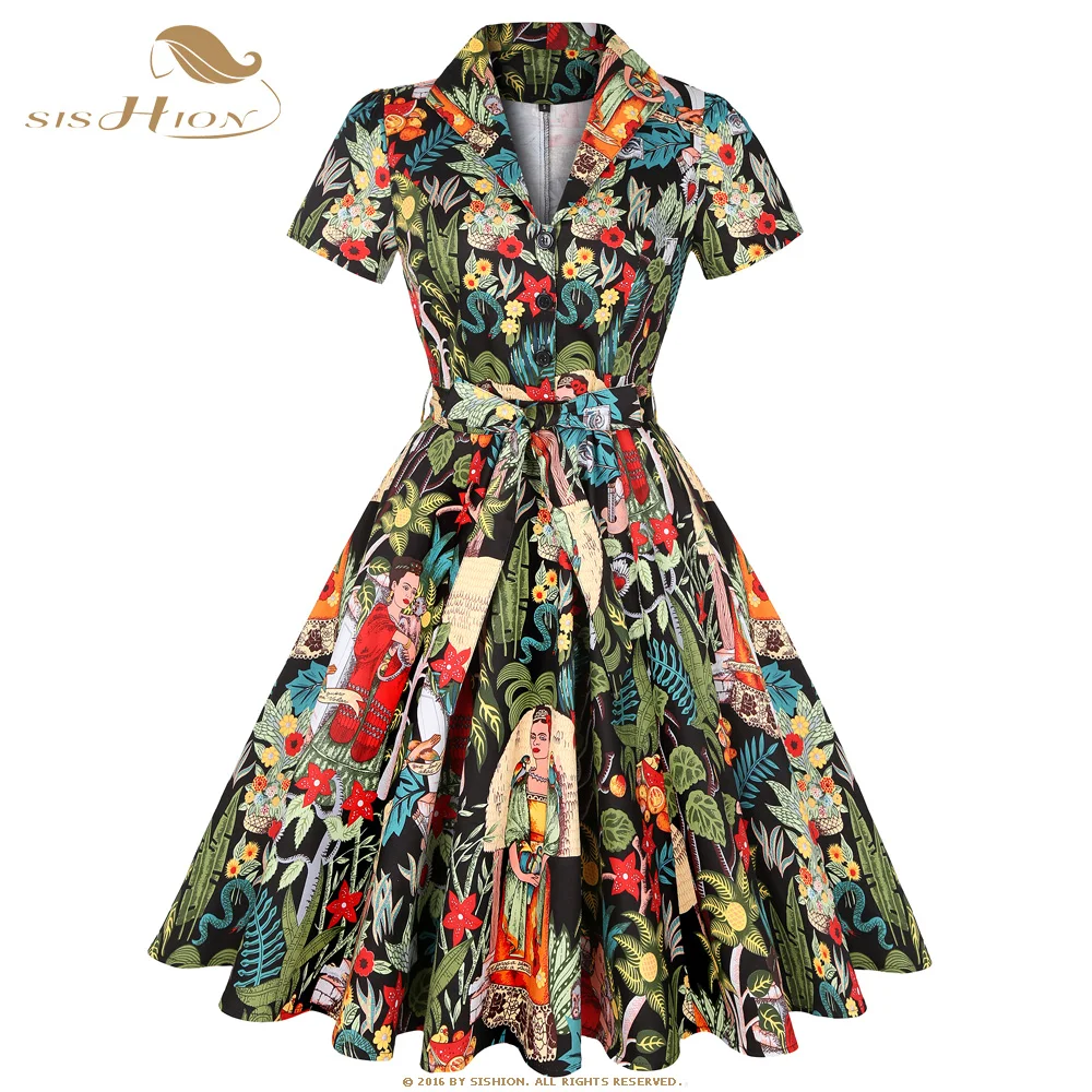 SISHION coton femmes robe robes SD0002 à manches courtes imp...