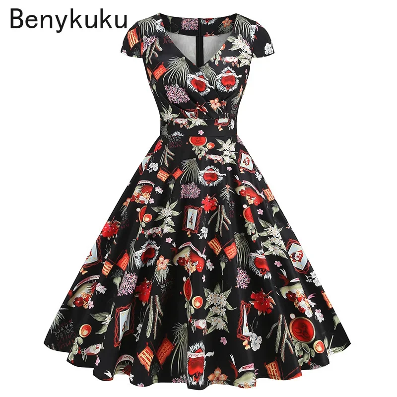 Robes d'été Robe vêtements Robe florale rétro Swing décontract&eac...