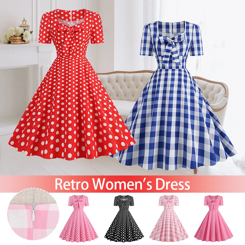 Robe rockabilly rétro à pois pour femmes, grande balançoire, robe de cocktail, ...