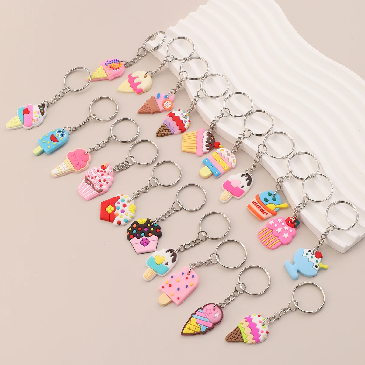 Porte-clés crème glacée en PVC, mignon sac à dos, accessoires de sac &ag...