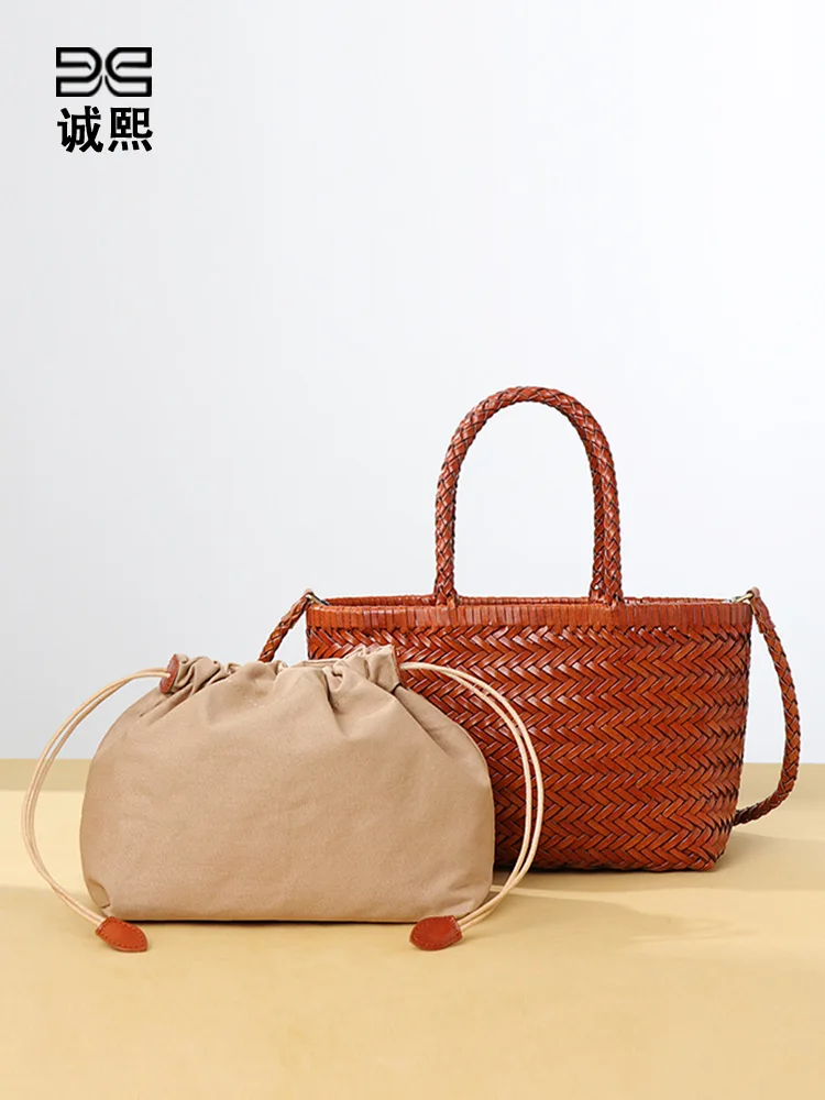 Sac à main en cuir de style panier, sac tissé vintage...