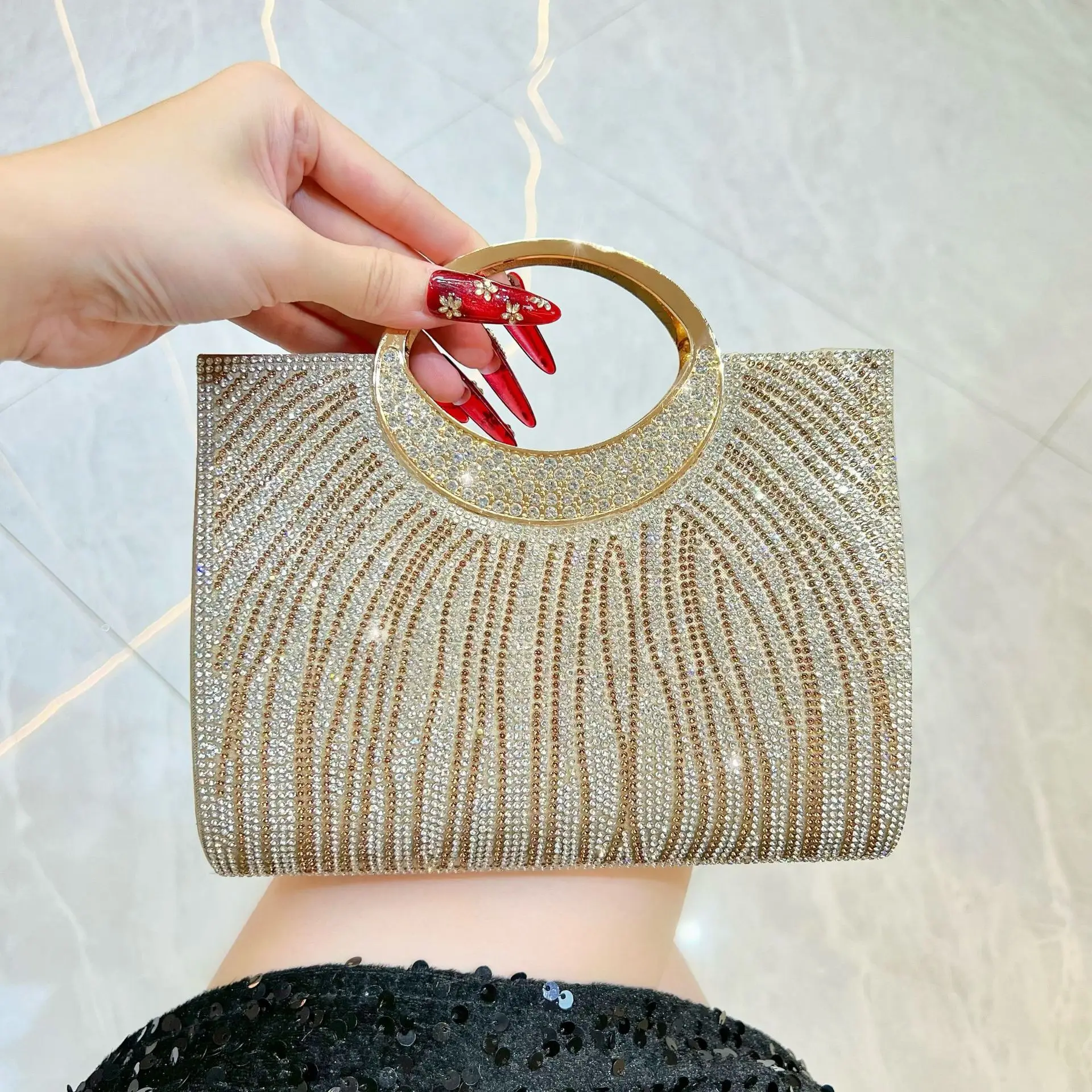 Sac de soirée tendance, sac à main rayé orné de strass étincelant...